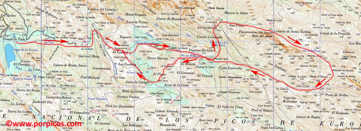 LAGOS DE COVADONGA - MAJADA DE BELBIN - BRAÑAREDONDA - VEGA ESPINES - COLLADO LA MUDA - COMPLENGO VIEJO - LA VEYUGA - HORCADA LOS BUEYES - COMPLENGO - LAGOS COVADONGA