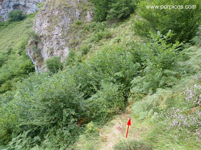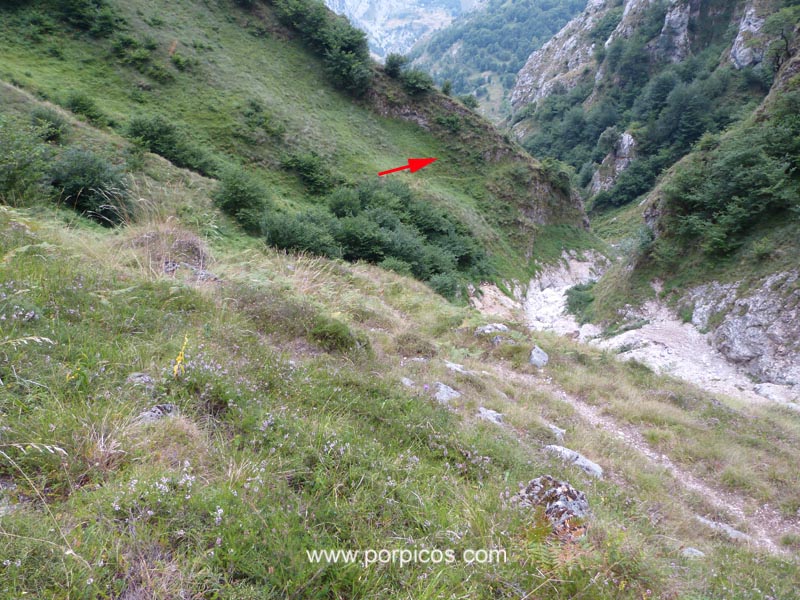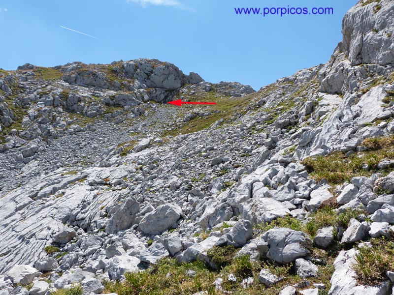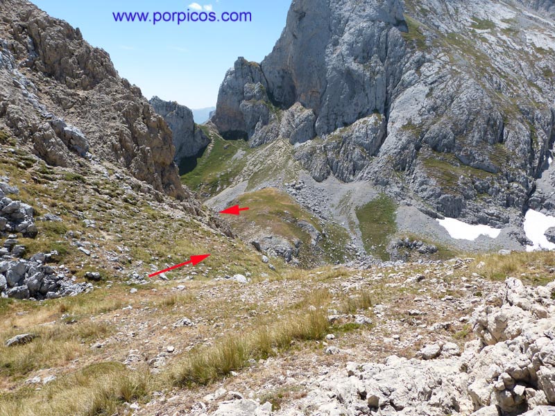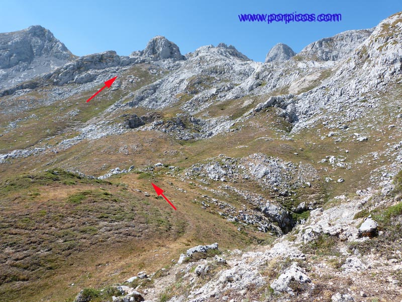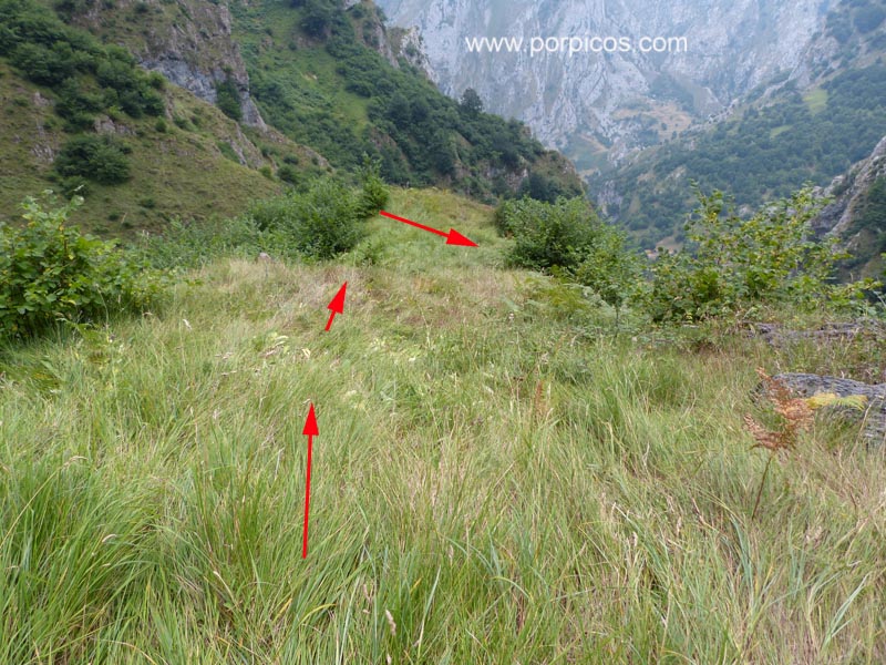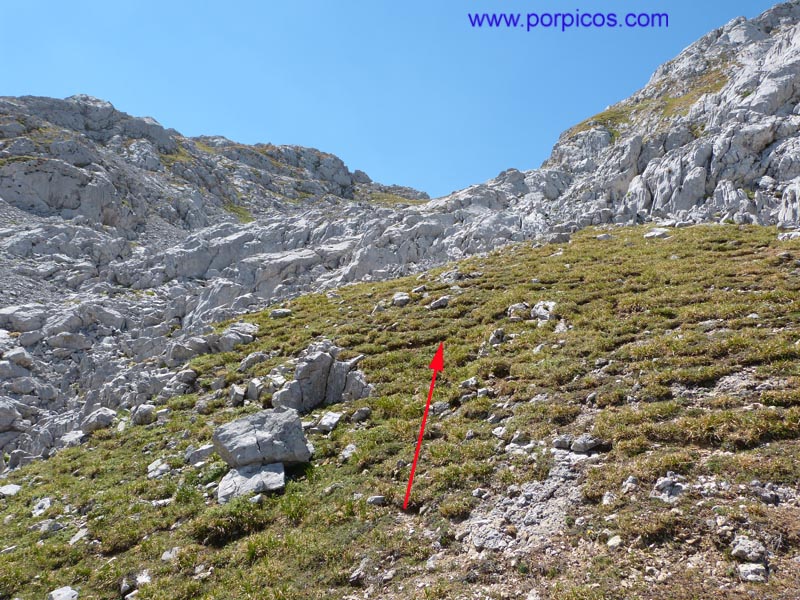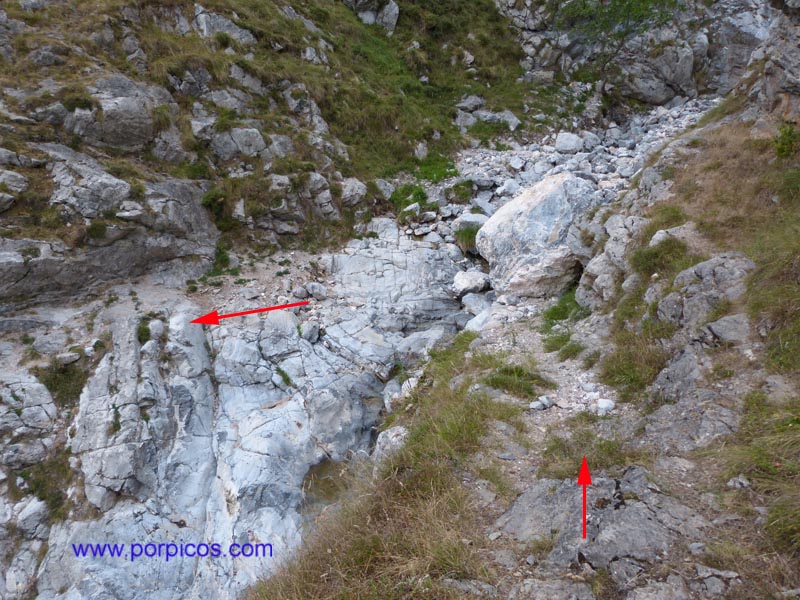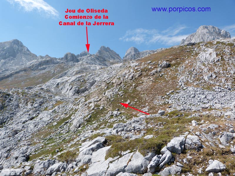 La flecha en vertical indica hasta donde debemos llegar, que está la entrada a la Canal de la Jerrera