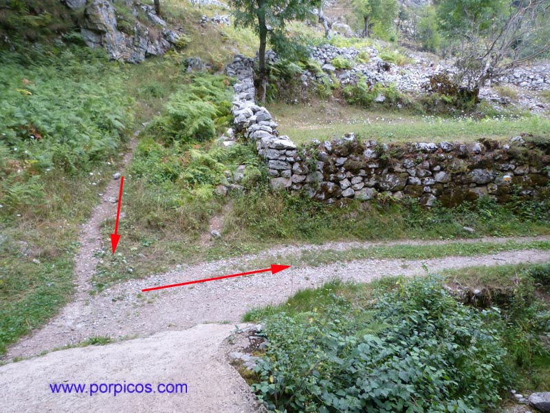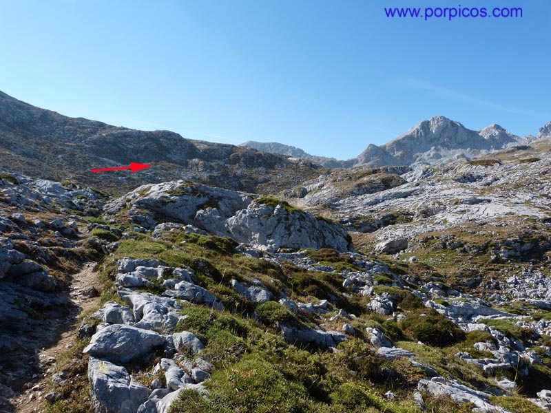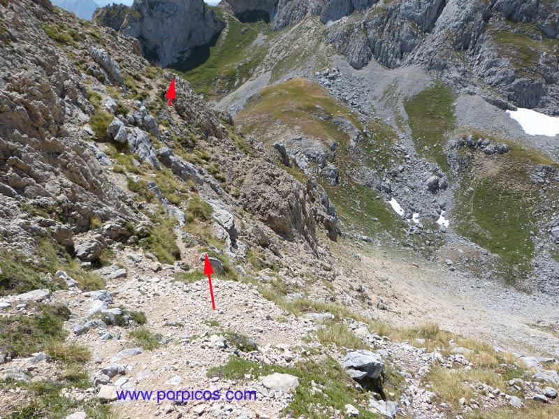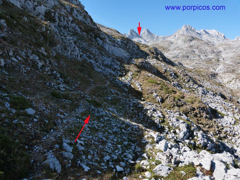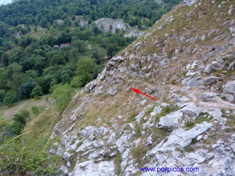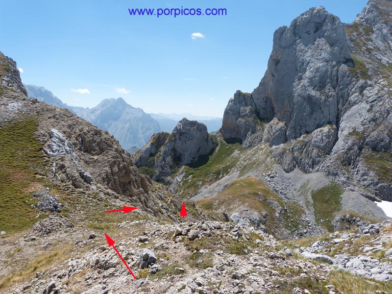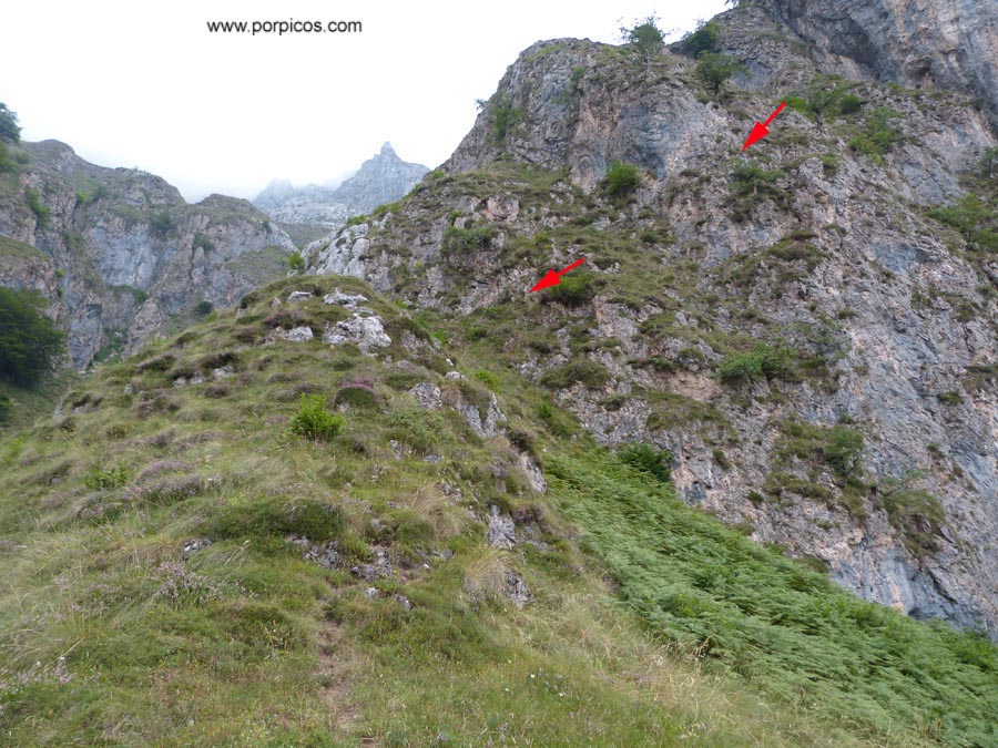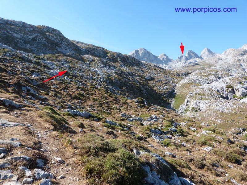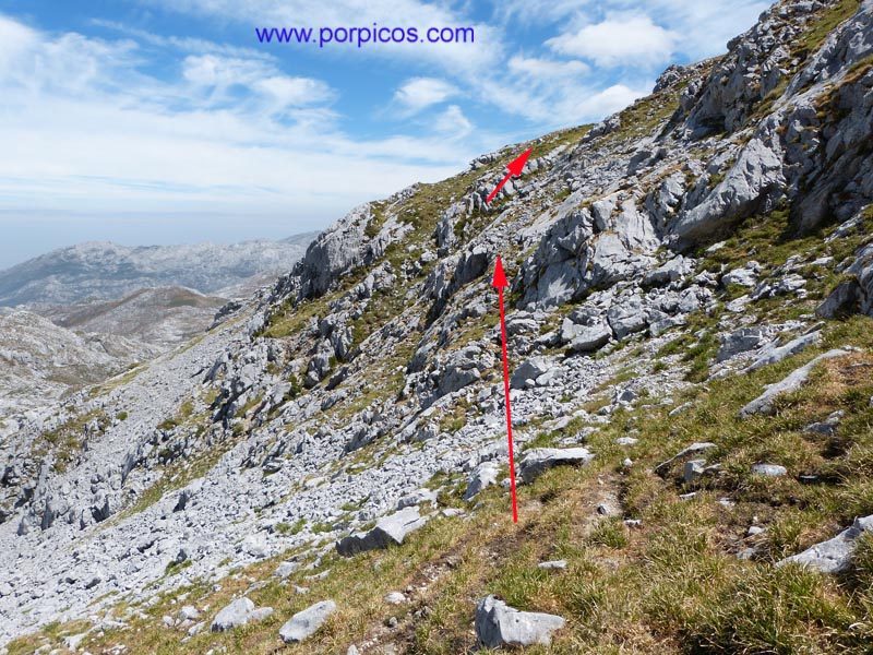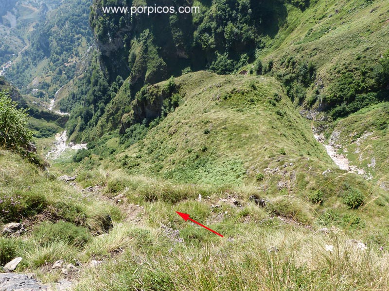La flecha en vertical indica hasta donde debemos llegar, que está la entrada a la Canal de la Jerrera