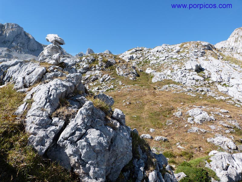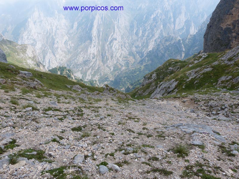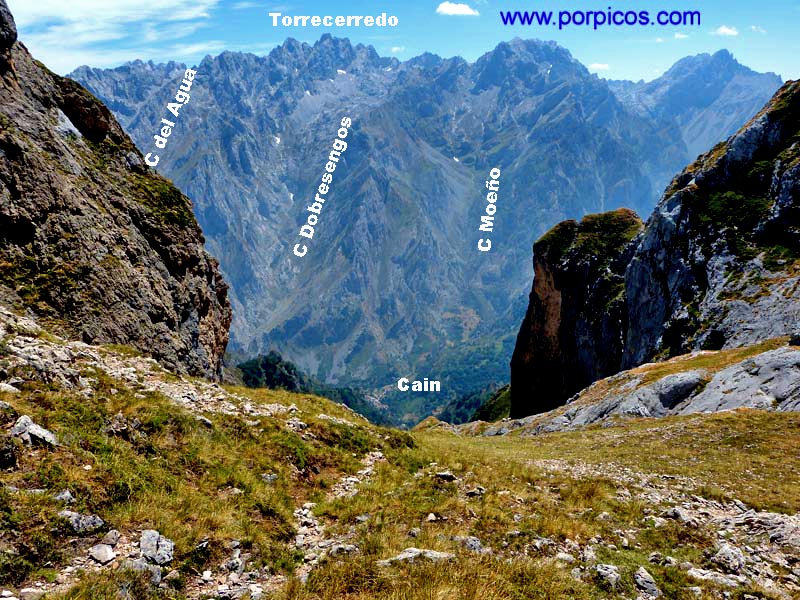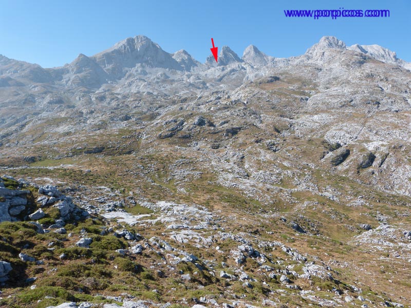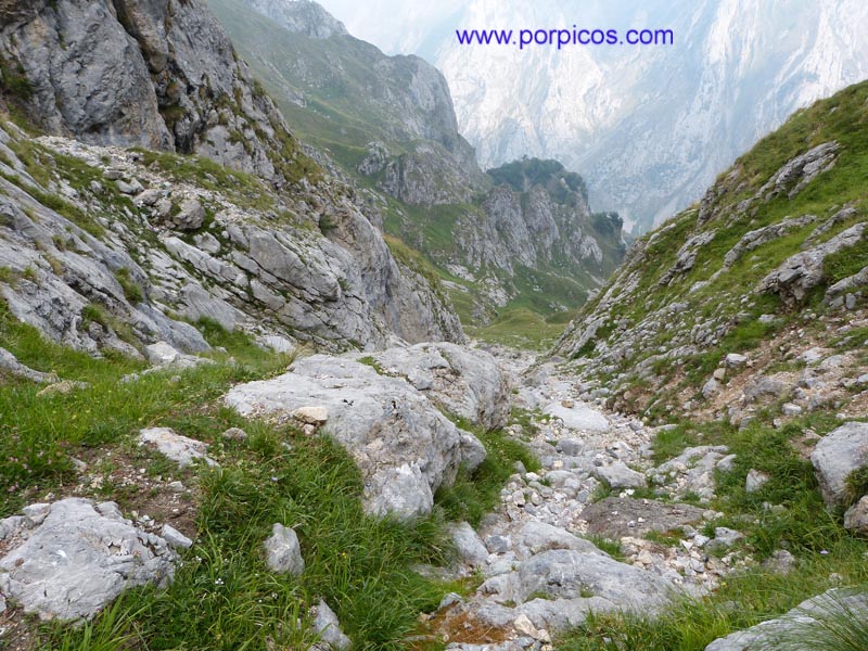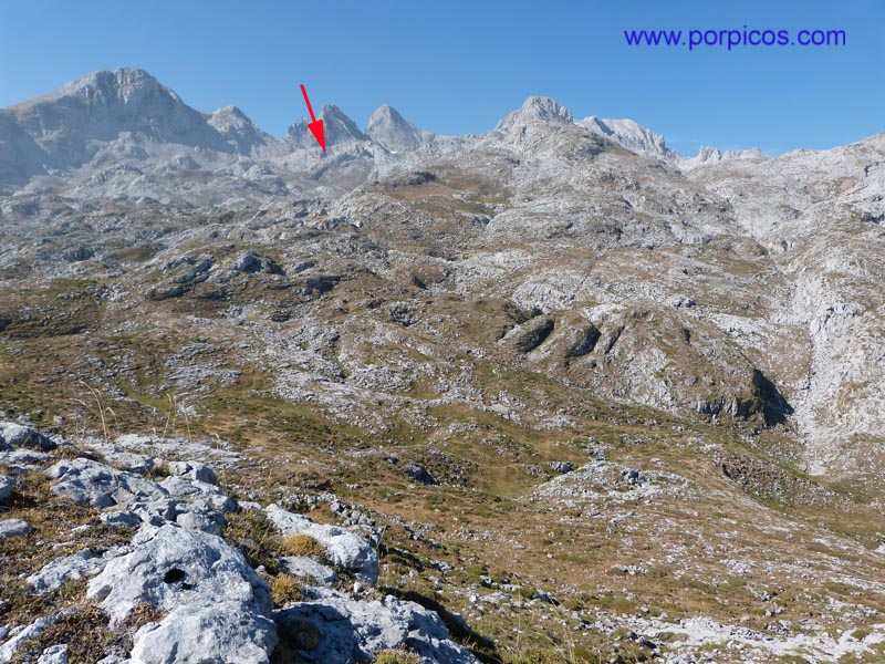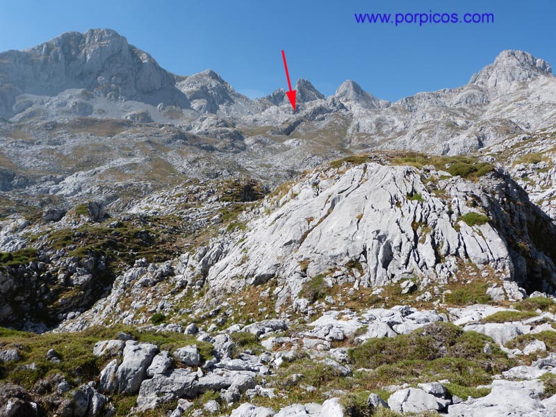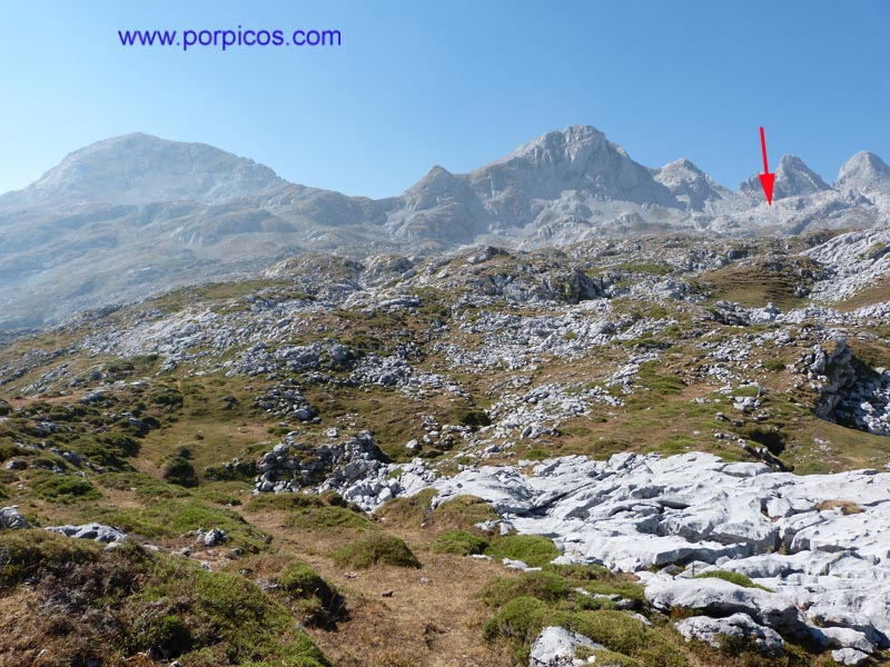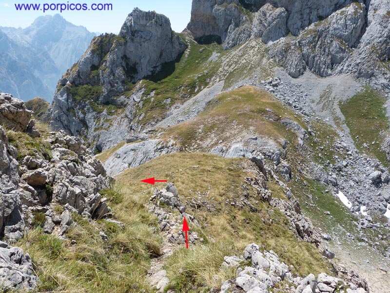 La flecha en vertical indica hasta donde debemos llegar, que está la entrada a la Canal de la Jerrera