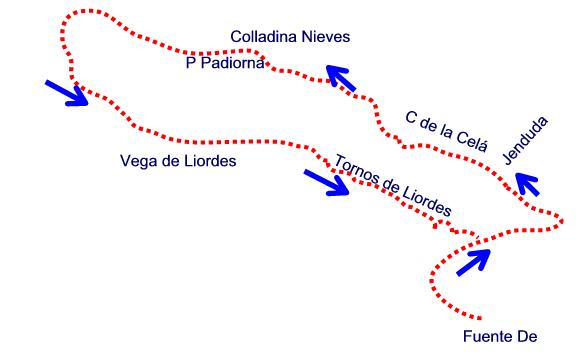 FUENTE DE - CANAL DE LA CELA - LA PADIORNA - COLLADINA DE LAS NIEVES - VEGA DE LIORDES - TORNOS DE LIORDES - FUENTE DE