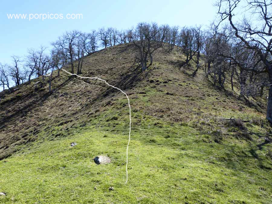 Si miramos por el pequeño valle que baja, nos indica el camino de bajada