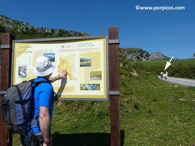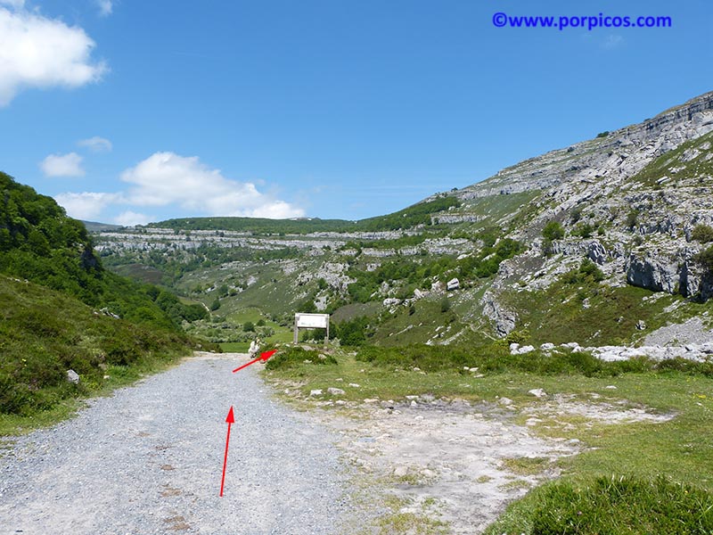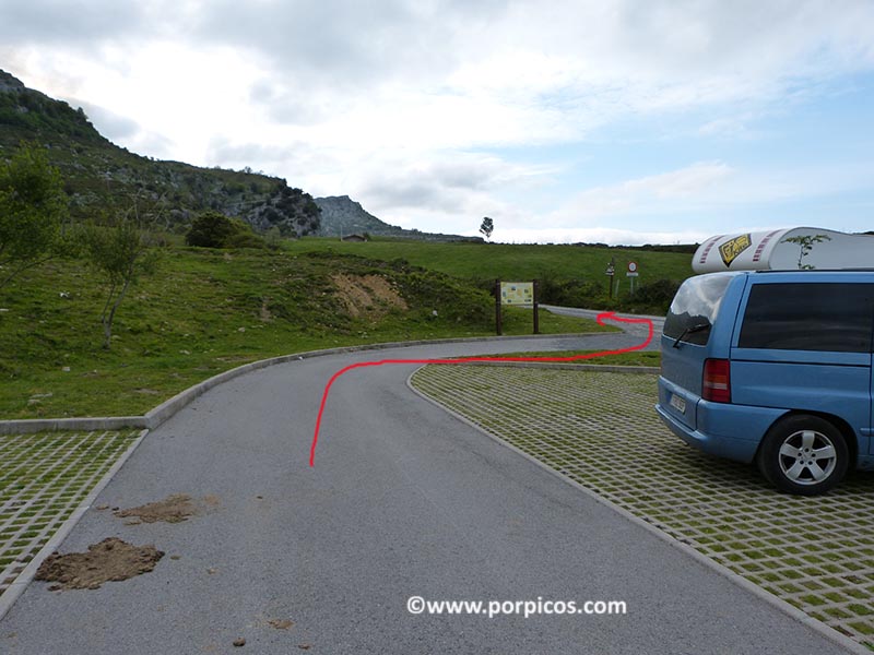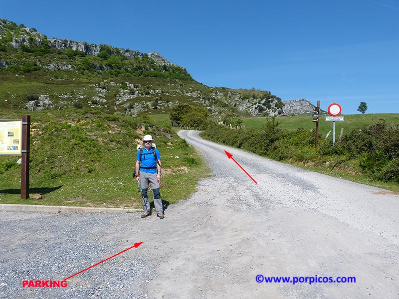 Al terminar el puerto encontramos este aparcamiento y la ruta comienza por donde indica la flecha