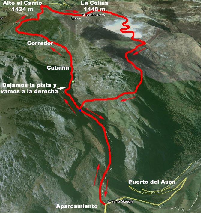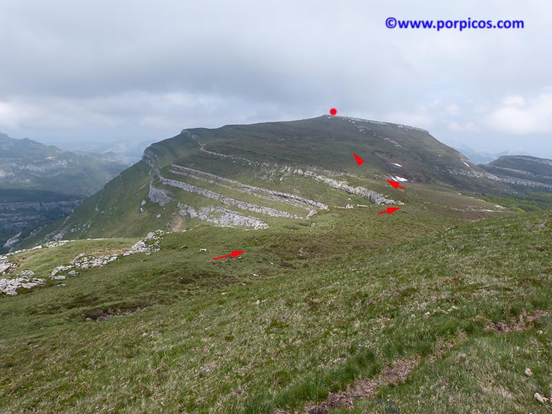 Decidimos subir a la cima indicada con el punto rojo