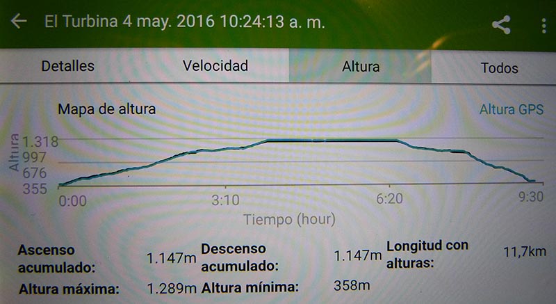 Unos 11 km total (subir y bajar) 3:30 h subir y 3 h bajar TRACK