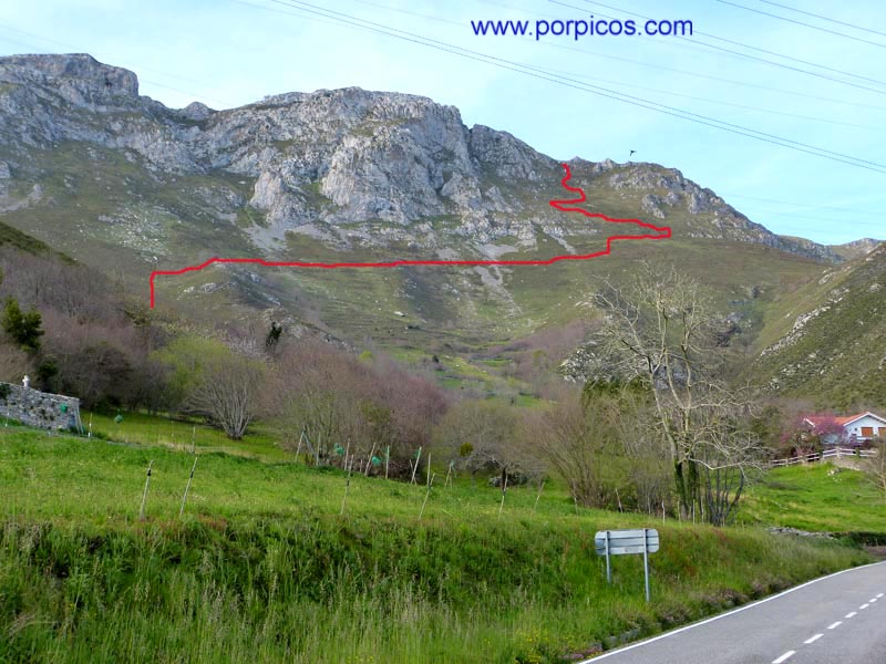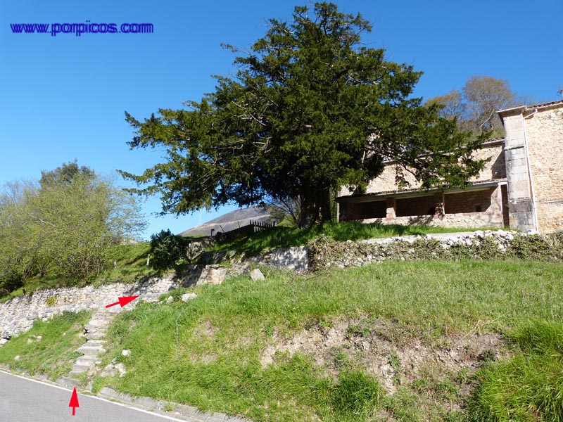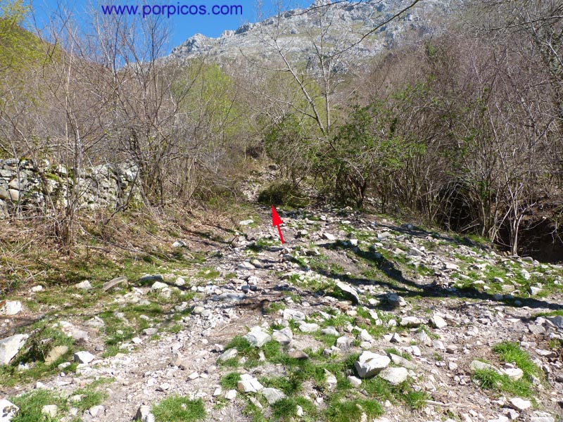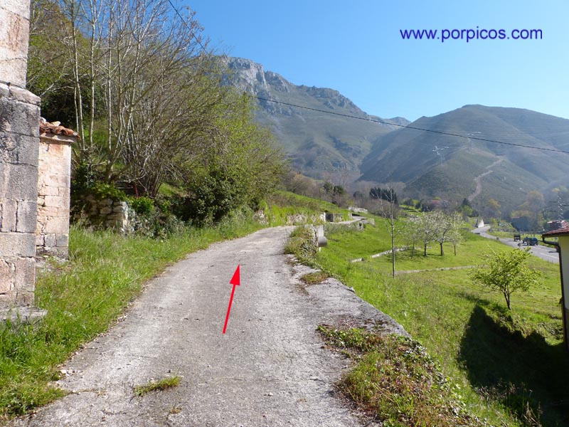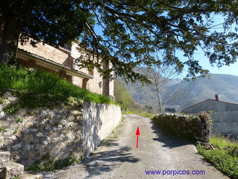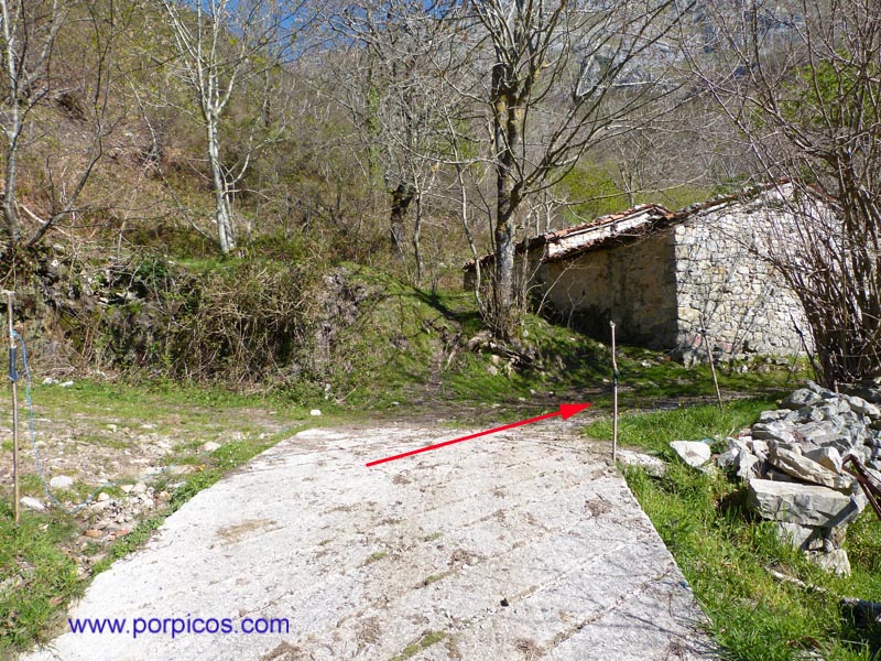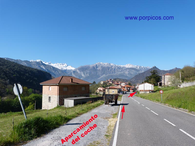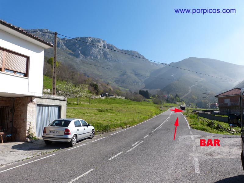 Desde Arenas de Cabrales, llegamos a Arangas (Asturias), dejamos el bar a la derecha y continuamos hasta donde marca la flecha para aparcar