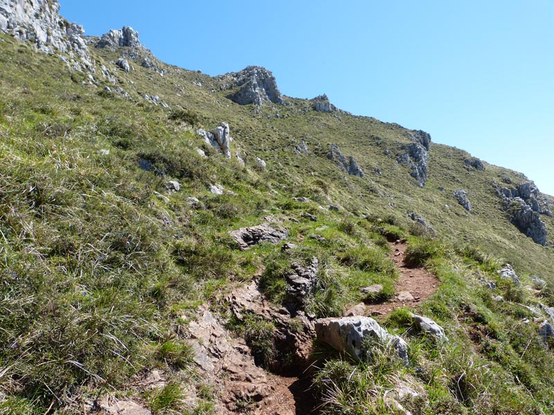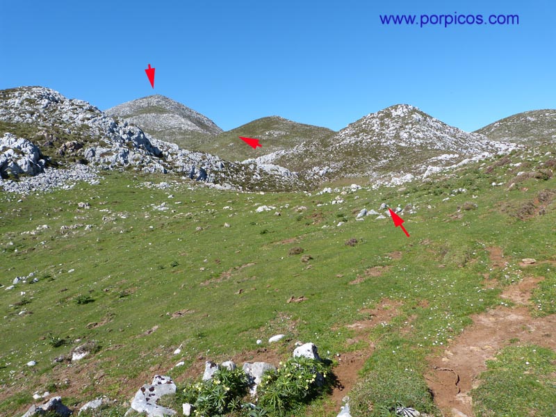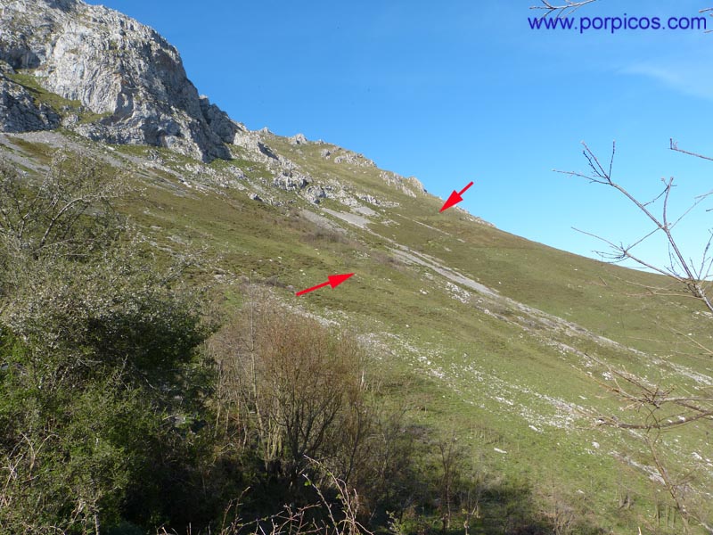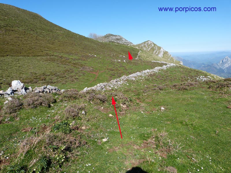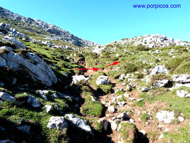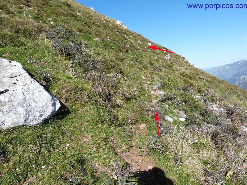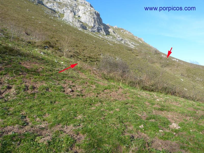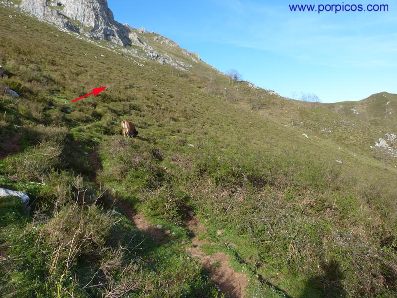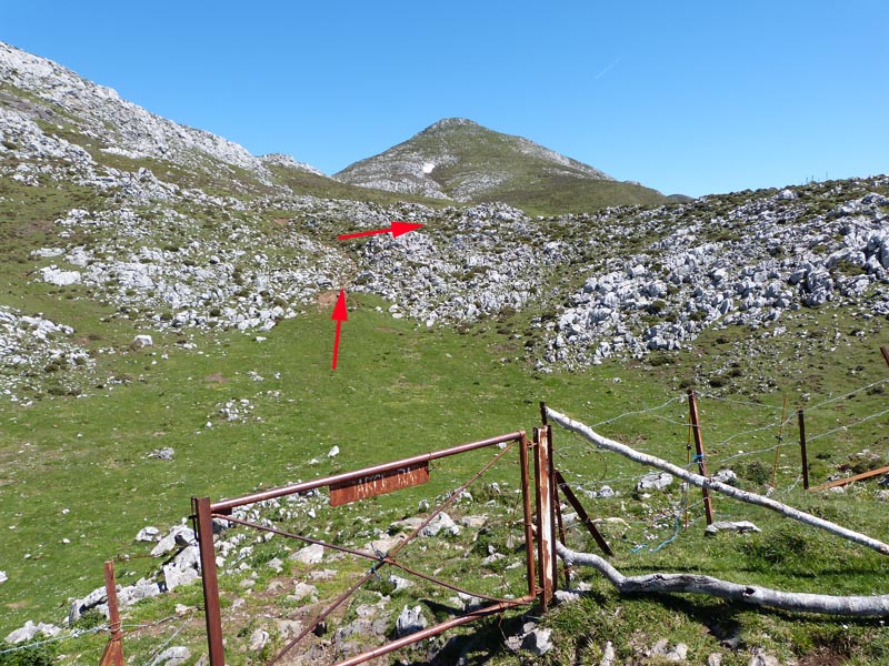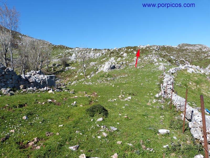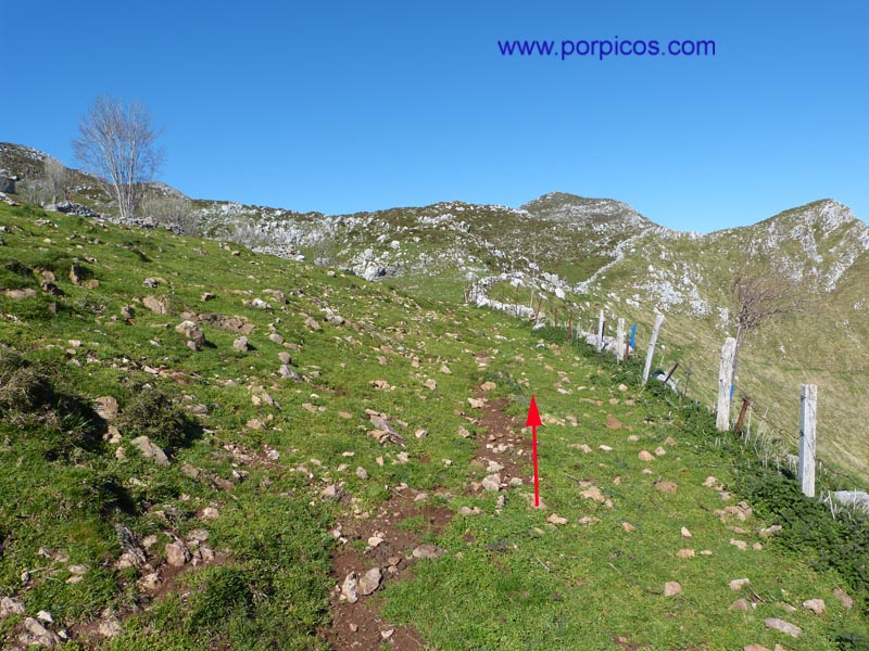 Salimos a una pequeña pradera y enfilamos por el sendero en dirección de las flechas